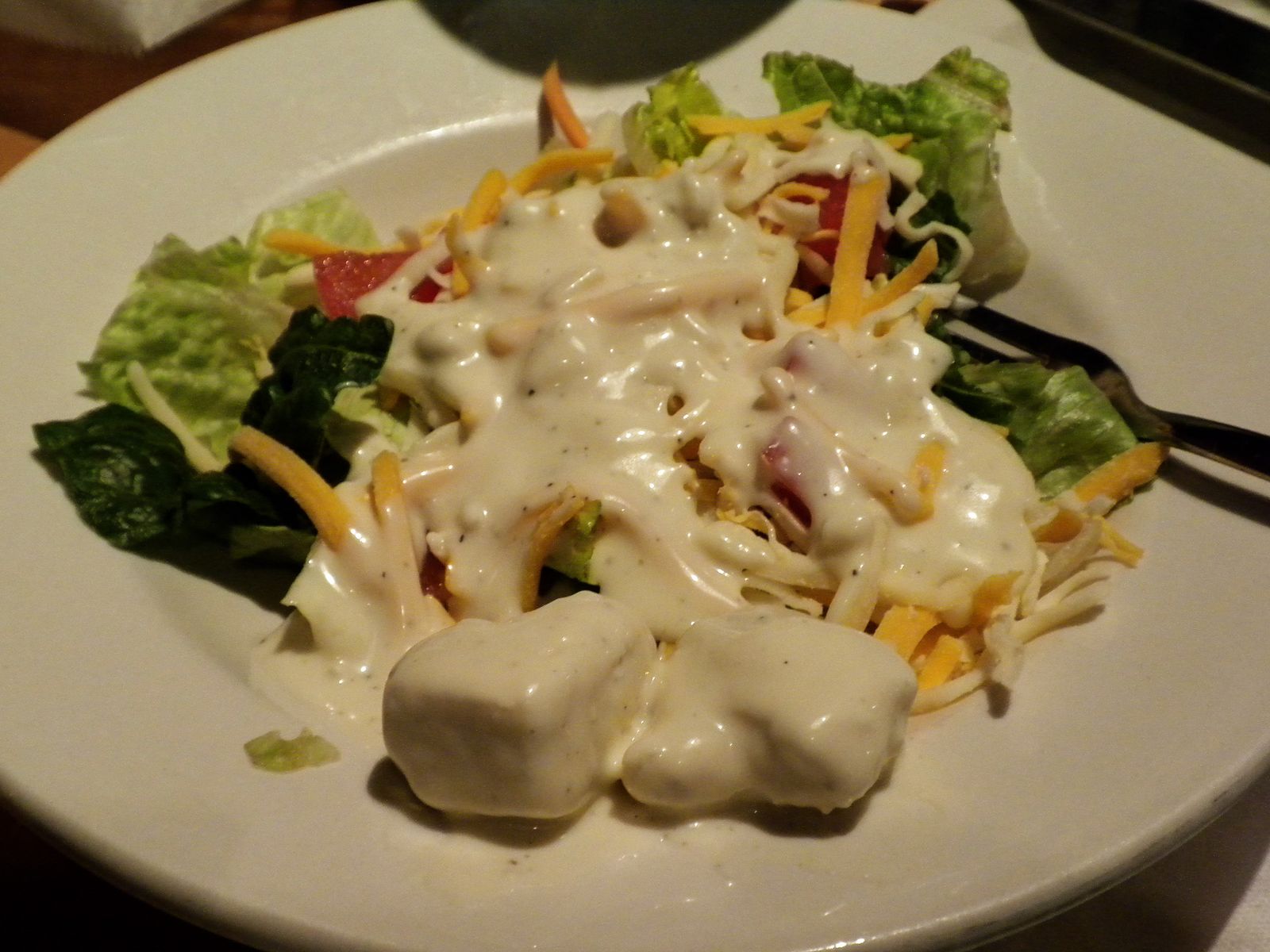 My dad would have LOVED this salad. I asked for bleu cheese dressing and when they brought it out, I about died with how big the bleu cheese chunks were! I mean, they were SO big that I had to actually break them up! Yes, those two big chunks at the bottom of the picture are bleu cheese!